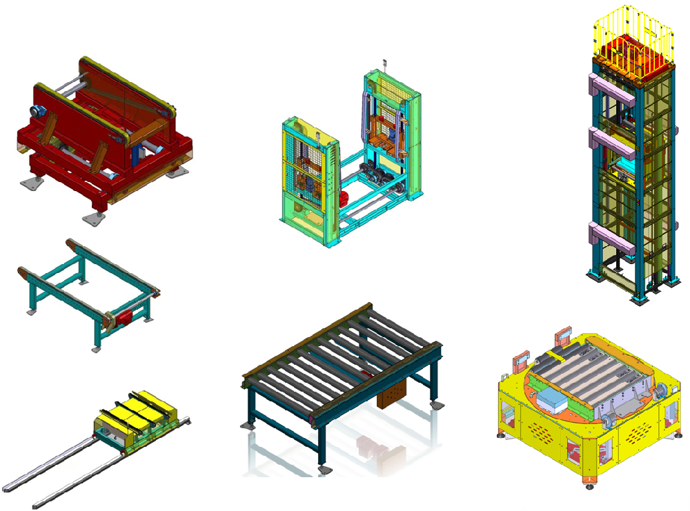 升降機(jī)4套 滾筒線257臺 移栽機(jī)76臺 提升機(jī)6臺 頂升臺60臺 |