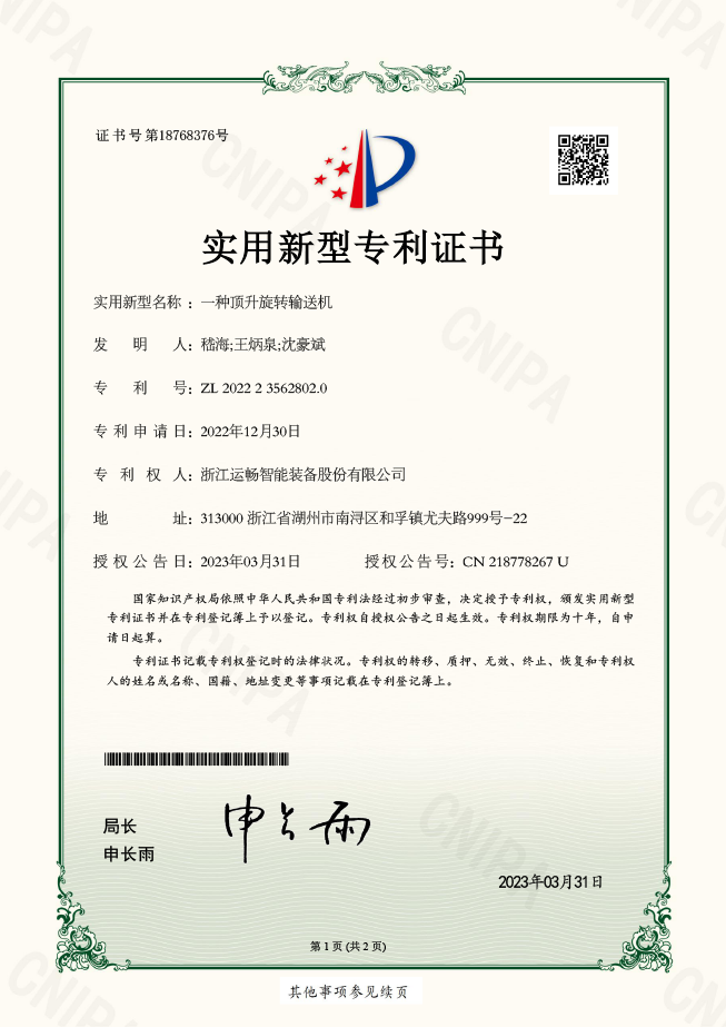 一種頂升旋轉(zhuǎn)輸送機(實用新型專利)